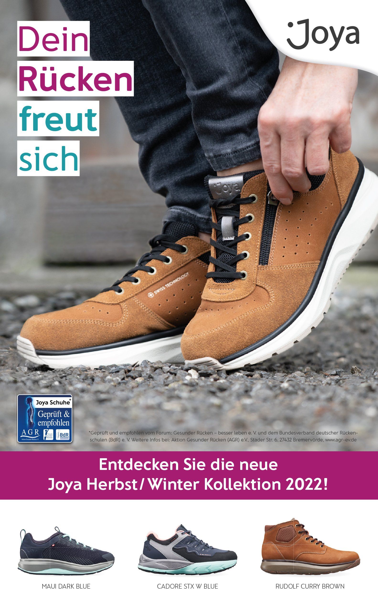 Aber die Herbst/Winter Kollektion 2022 hat noch mehr zu bieten! Nicht nur werden Verkaufsschlager farblich in Szene gesetzt, sondern mit der neuen Sohlentechnologie «Active» bringt Joya eine sportliche Outdoorlaufsohle für gesundes und schmerzfreies intensives Gehen auf den Markt. Mit Low-Cut und High-Cut Modellen für Damen und Herren wird bei jedem Wetter für einen optimalen Dämpfungs-/Rückpralleffekt, besondere Rutschfestigkeit sowie Stabilität gesorgt!
