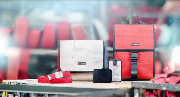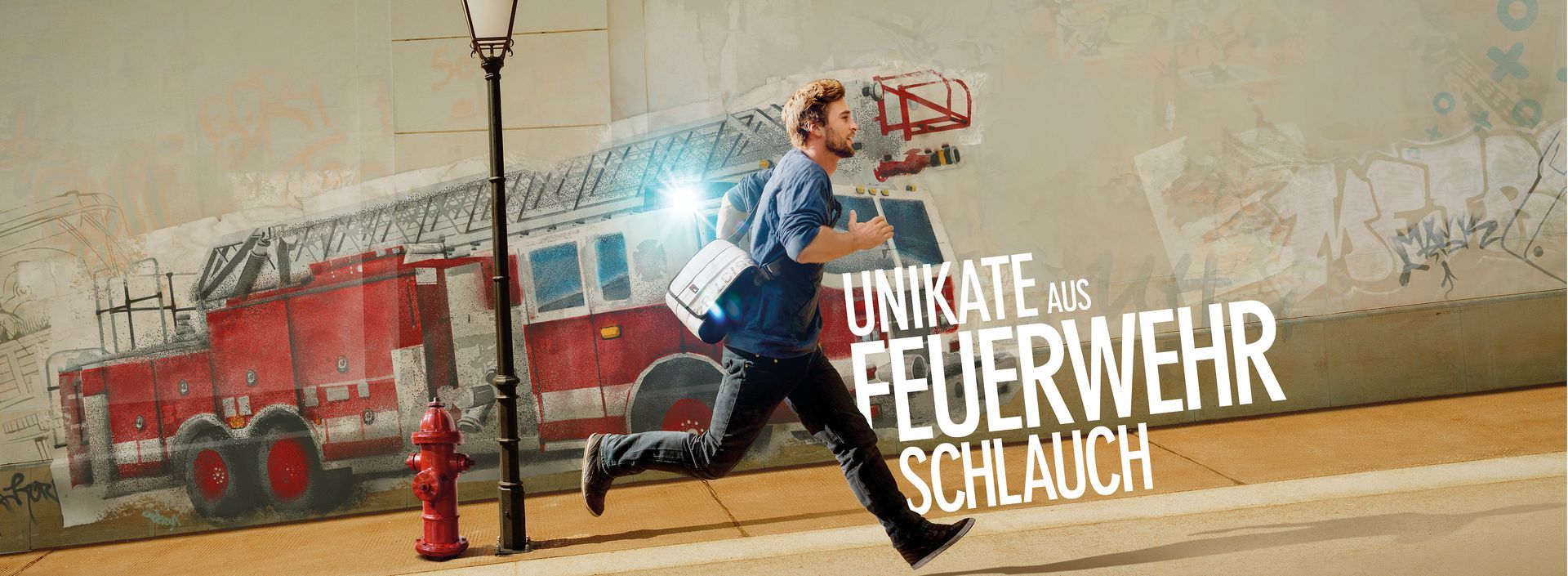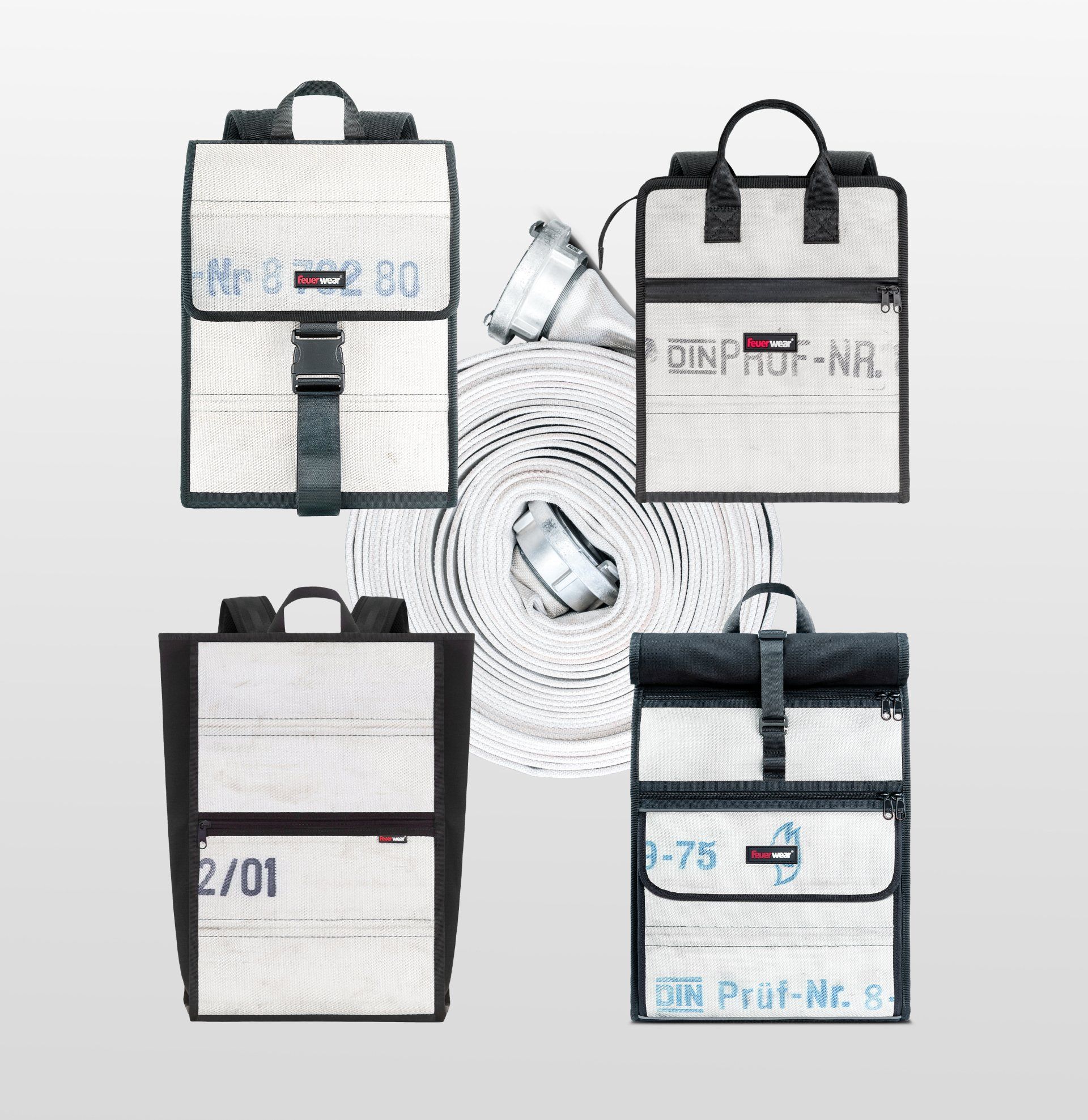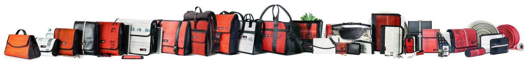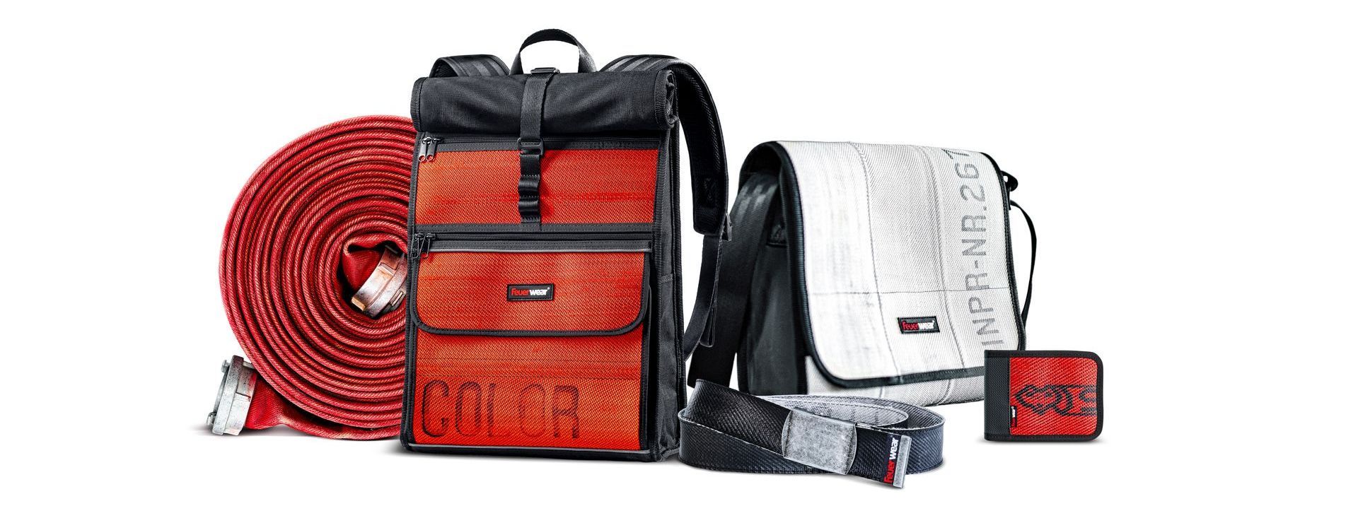 Feuerwear recycelt ausgemusterte Feuerwehrschläuche zu hochwertigen Taschen, Rucksäcken und Accessoires.