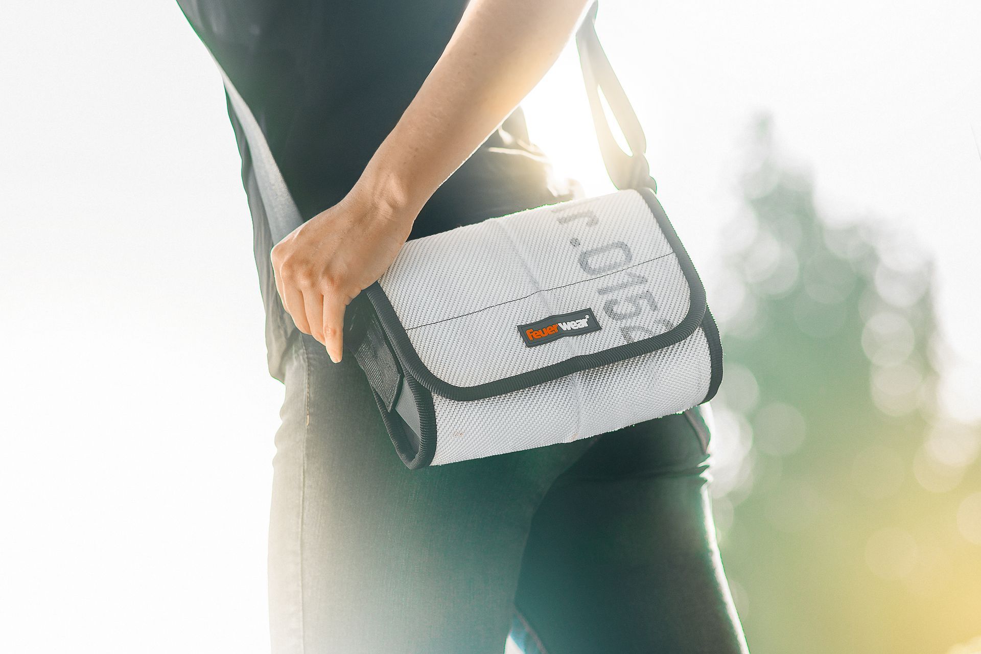 Geradlinig, ehrlich und funktional. Und der ausgemusterte Feuerwehrschlauch mit seinen Einsatzspuren sieht einfach unfassbar gut aus & jedes einzelne Produkt ist ein Unikat. Die