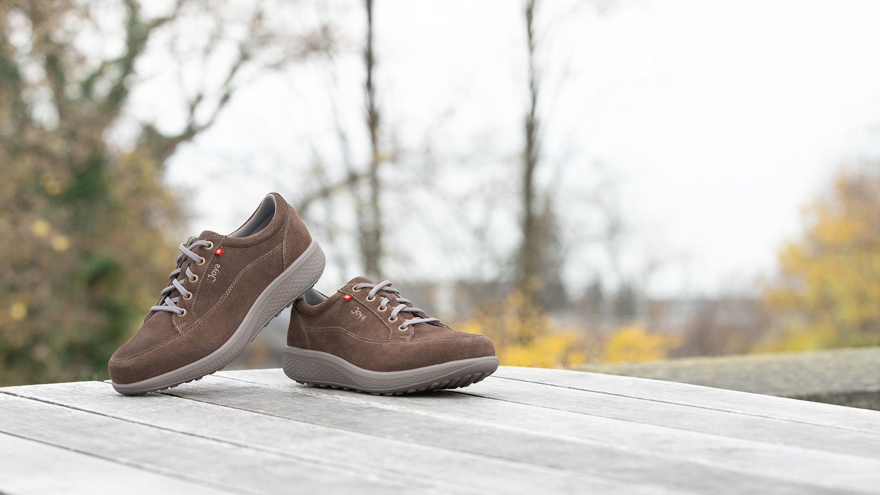 Ein weiteres Highlight – das neuste Joya Modell auf der Nuvola Sohle namens Lucy. Dieses Herbstmodell, in den ansprechenden Herbstfarben Braun und Dunkelgelb erhältlich, ist gemacht für die relaxte Fortbewegung und sorgt, dank der gewellten Schauminnensohle, für ein Laufen wie auf Wolken.