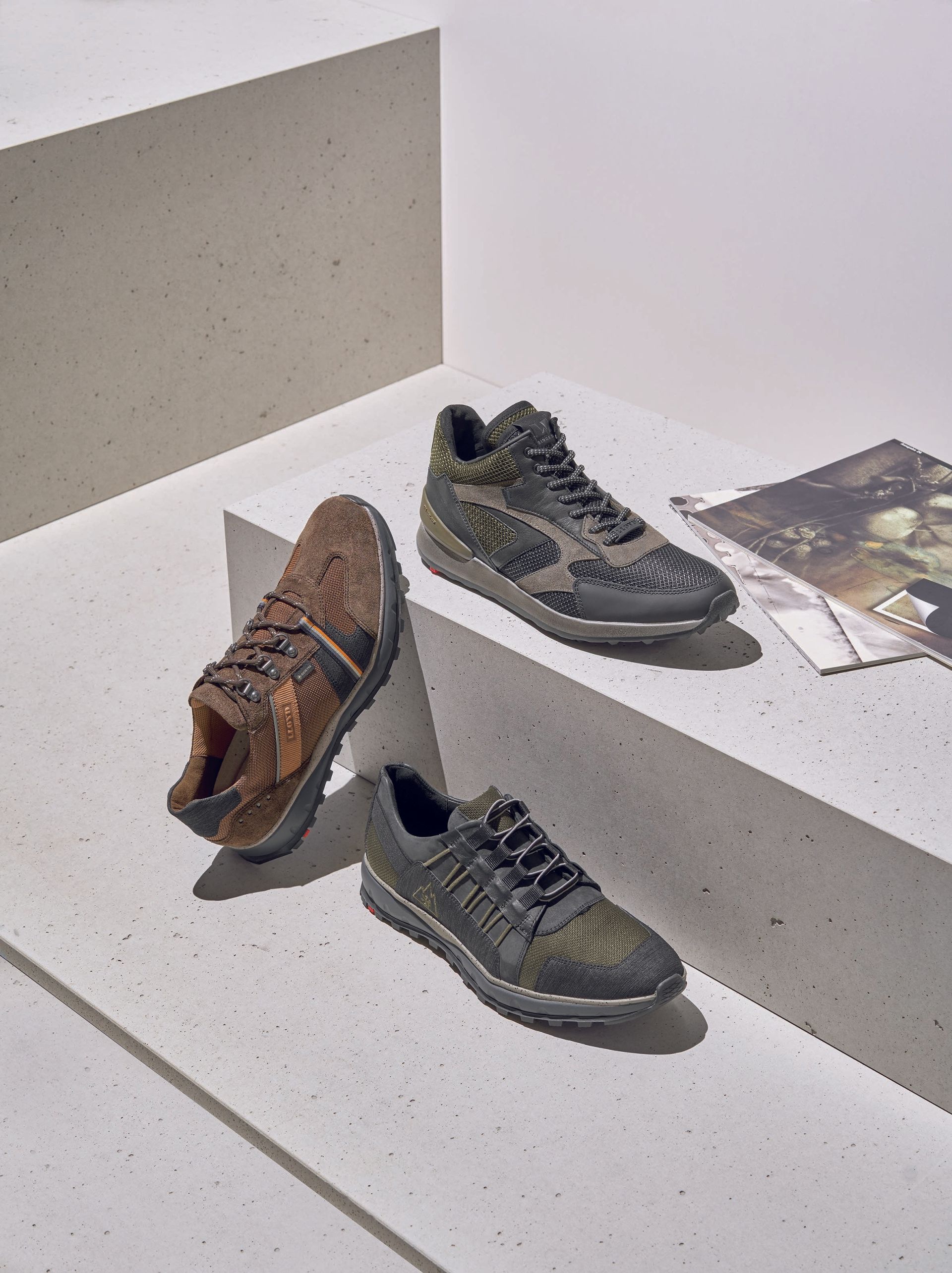 Hinzu kommen Kollektionskapseln, die Geschichten erzählen. Soziale und ökologische Werte verschieben sich ins Zentrum der Aufmerksamkeit, in der Gesellschaft kommt ein Umdenken in Gang. So präsentiert LLOYD vegane Schuhe aus Microfaser wie auch eine Sustainability-Gruppe, bei auch ein Material aus recyceltem Meereskunststoff und Kunststoff aus Landquellen verwendet wurde.